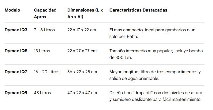 - Versatilidad de Agua: Aunque se comercializan frecuentemente para agua dulce, pueden adaptarse para agua salada añadiendo accesorios opcionales como el mini espumador de proteínas (skimmer) Dymax IQ.
