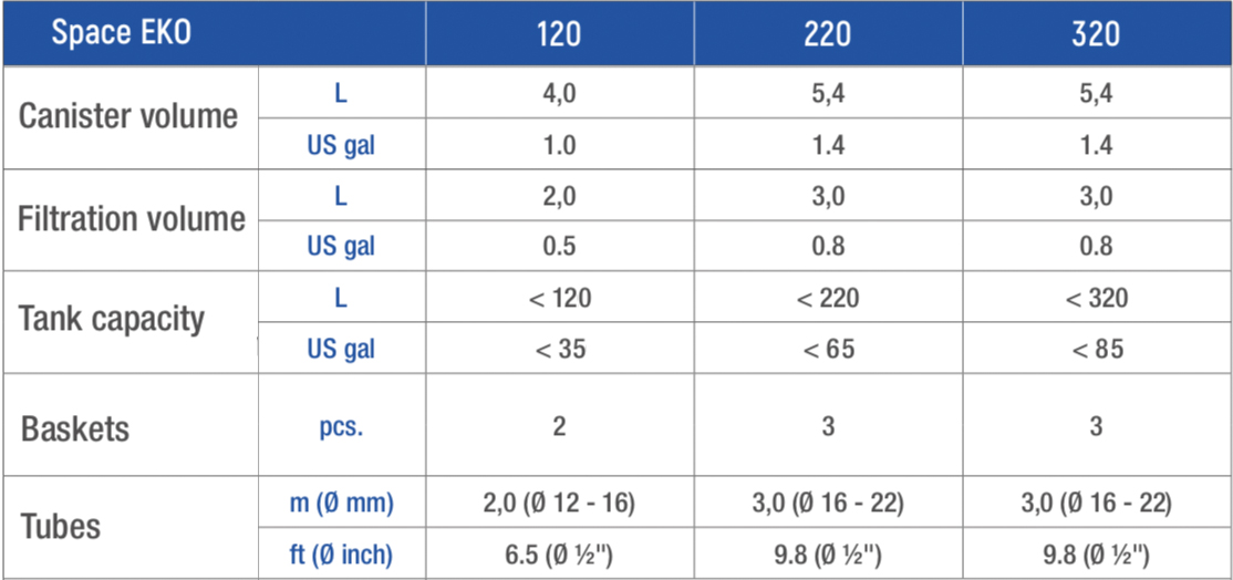 - Space Eko 320 con un caudal de 900 L/h y una capacidad de 5,4 litros es apto para acuarios de hasta 320 L.