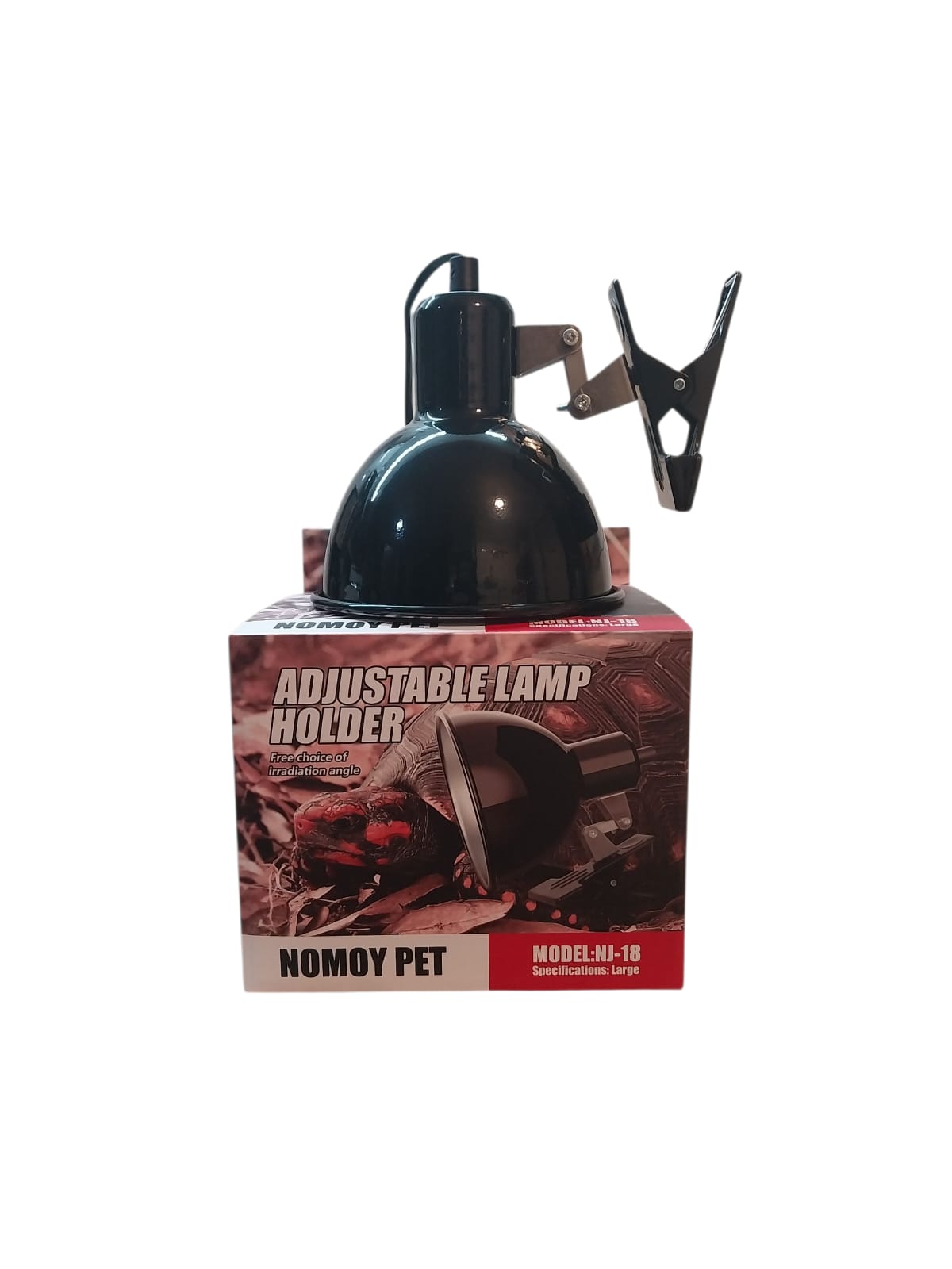 La lámpara para terrario Nomoy Pet NJ-18 tiene una cúpula reflectora que se extiende más allá del frente de la mayoría de las bombillas.