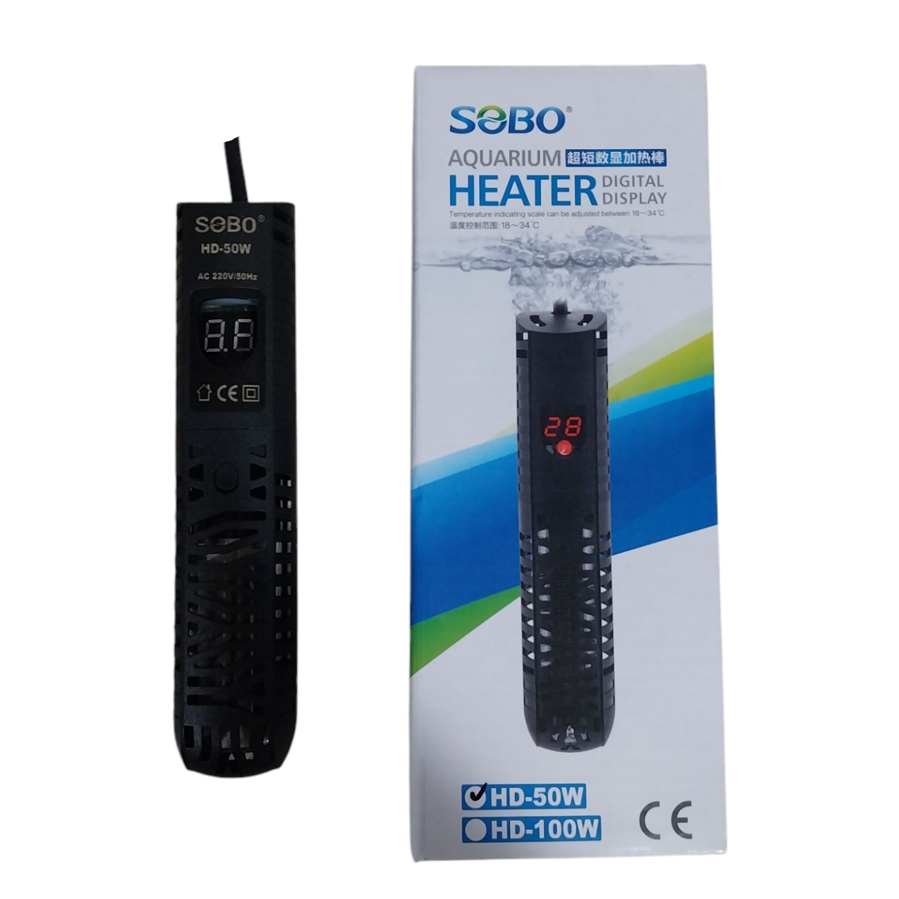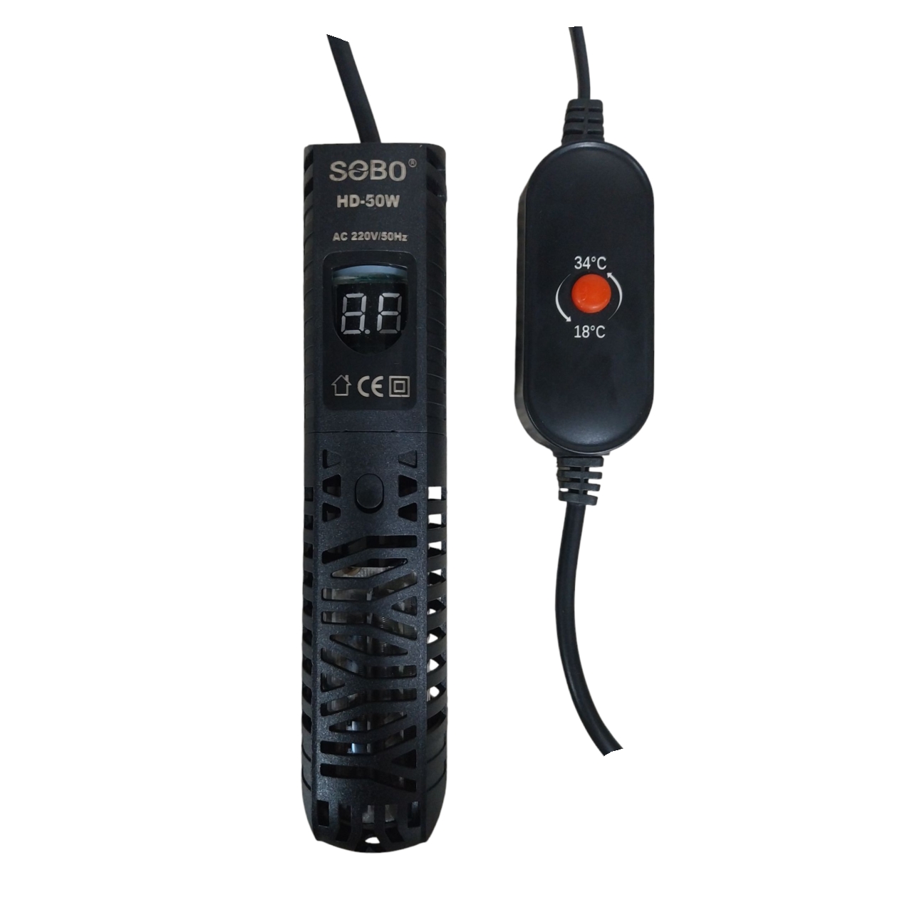 El Termocalefactor Sobo HD-50W es un calentador sumergible con termostato digital de alta precisión (±0.5°C), encapsulado en una carcasa de vidrio templado resistente a impactos.